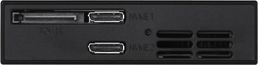 1组3.5吋FDD空间转1颗2.5吋插拔抽取盒U.2 U.3 NVMe 64G* 兼容于1组3.5吋FDD空间, 可安装1颗2.5吋NVMe