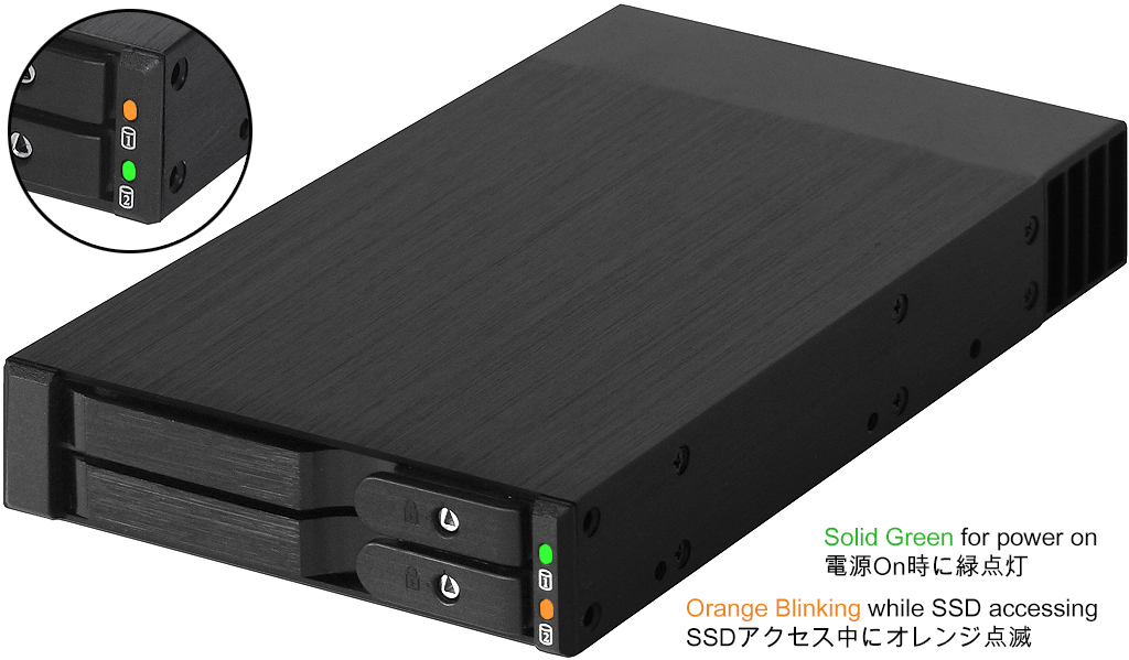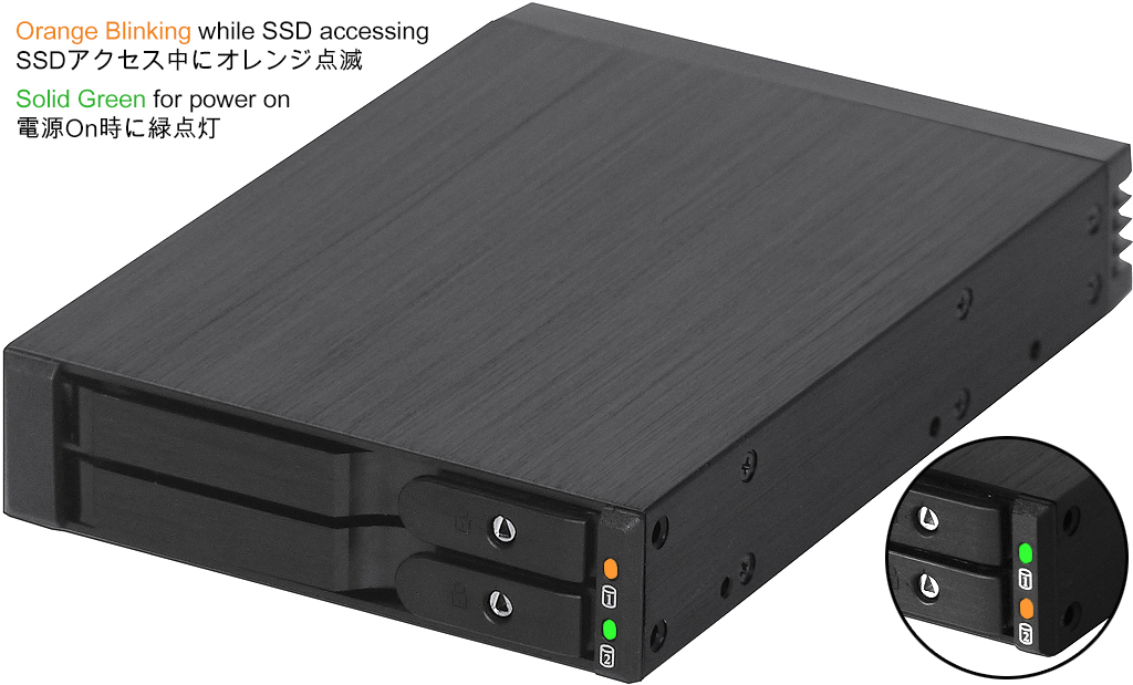 * 单体双色LED灯号设计: 绿色Power电源灯/橘色SSD读取灯